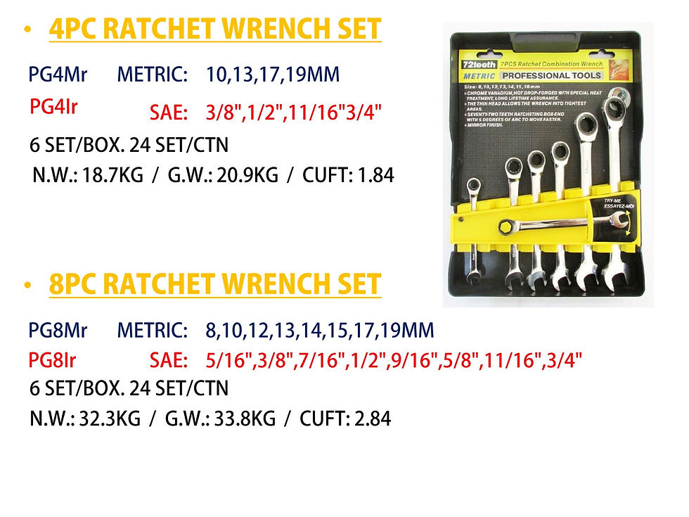 5 & 7 pcs Reversible Stubby Ratcheting Wrench Set